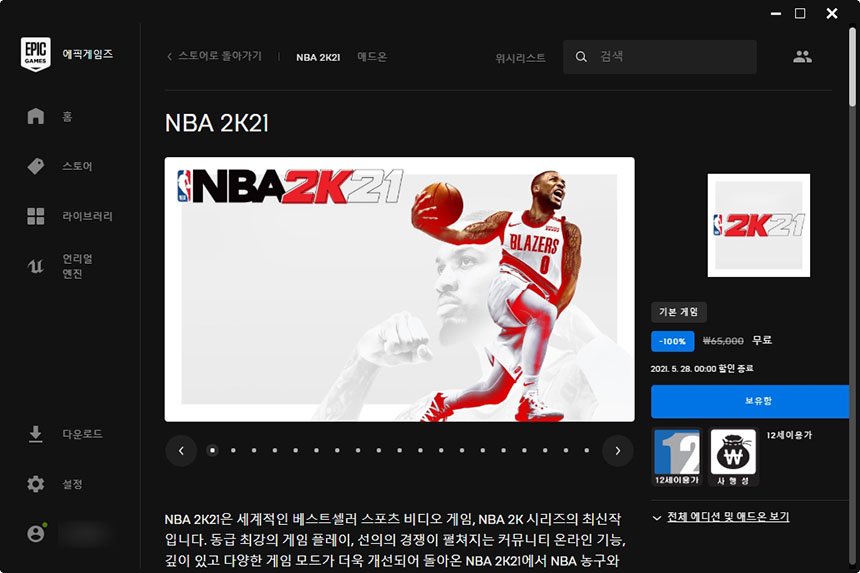 지금까지 에픽게임즈 무료게임 NBA 2K21를 다운로드 하는 방법을 자세하게 확인해 보았습니다. 그리고 혹시나 저와 같이 보유함 오류가 발생한다면 웹 브라우저를 통해서 시도해 보시길 바랍니다.