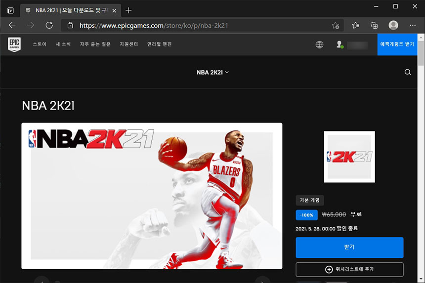 지금까지 에픽게임즈 무료게임 NBA 2K21를 다운로드 하는 방법을 자세하게 확인해 보았습니다. 그리고 혹시나 저와 같이 보유함 오류가 발생한다면 웹 브라우저를 통해서 시도해 보시길 바랍니다.