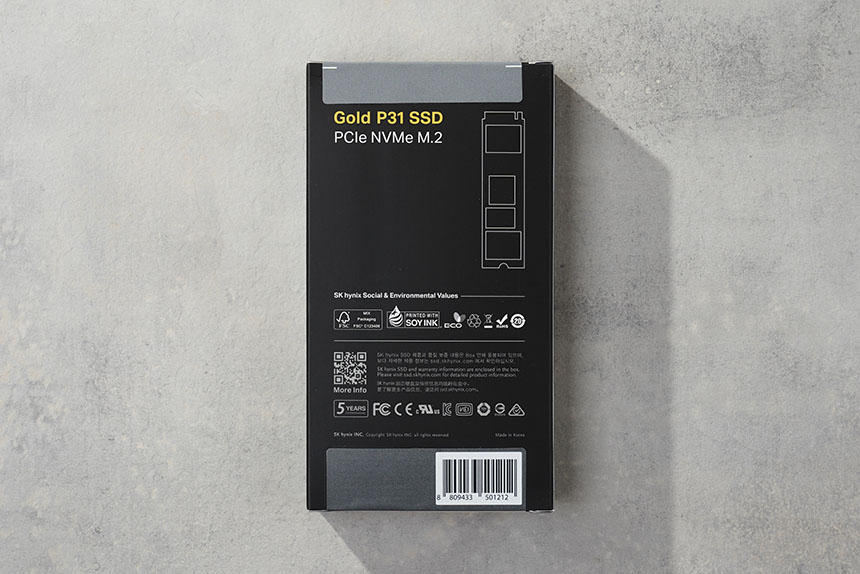 SK하이닉스 P31 NVMe SSD는 생분해성 패키지로 제작된 완충재에 수납되어 있습니다. 단순한 형태의 종이상자보다는 완성도가 있는 편이고 제법 단단하다는 느낌을 받았습니다.
