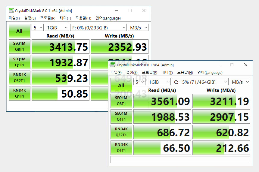 조립은 분해의 역순이고 속도를 확인해 보면 LG 그램 16에 기본으로 장착된 삼성전자의 SSD와 비교해서 읽기 속도는 소폭, 쓰기 속도는 중폭 정도 상승한 것을 확인할 수 있습니다.