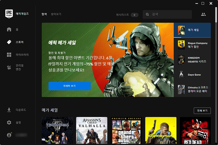 우선 어몽어스를 다운로드 받기 위해서는 에픽게임즈 런처를 설치해야 합니다. 참고로 최근에 에픽 메가 세일과 함게 11,000원 쿠폰이 제공되기 있으니 평소에 소장하고 싶은 게임이 있다면 이번 기회를 이용해 보시길 바랍니다.