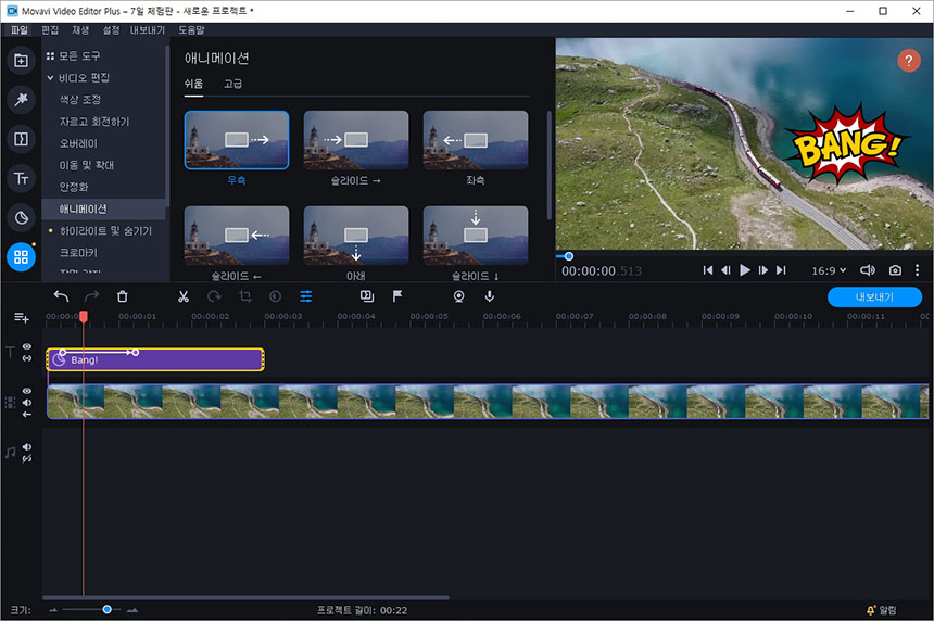 그리고 애니메이션 기능을 이용하면 동영상의 위에서 특정 사물이 움직이도록 설정할 수 있습니다. 움직임의 방향도 상당히 다채로운 편이어서 적절하게 활용할 수 있다면 동영상을 조금 더 재미있게 꾸며줄 수 있습니다.
