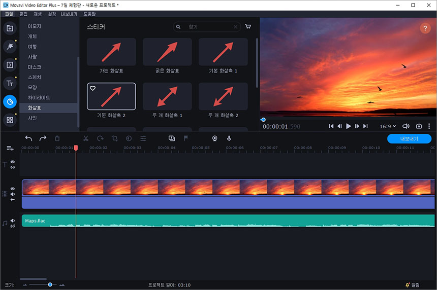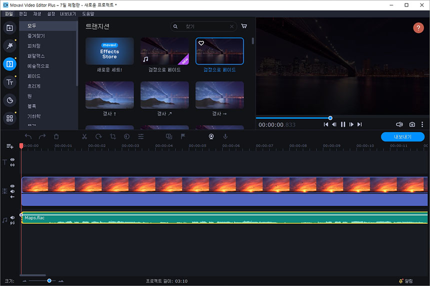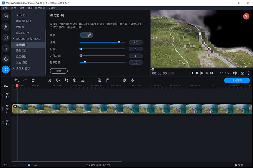 모바비 비디오 에디터 플러스 2021의 특징을 살펴보면 일반적인 동영상 편집 프로그램과 동일하게 타임라인 기반으로 비디오 클립과 이미지 그리고 오디오를 편집할 수 있습니다. 그리고 다양한 트랜지션과 필터 그리고 애니메이션과 크로마키 등의 기능을 지원합니다.