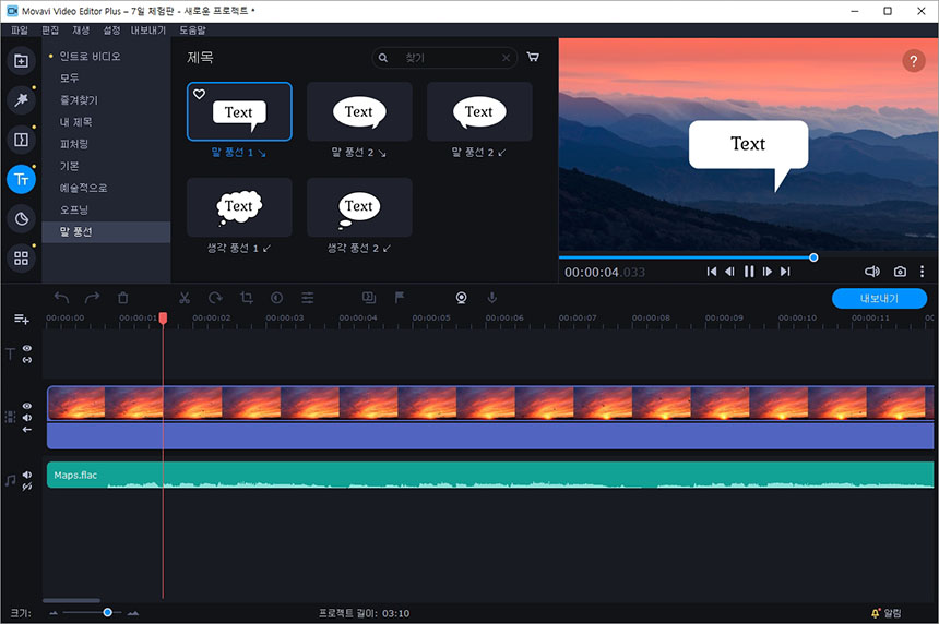 그리고 인트로 비디오 대신 바로 비디오 클립으로 시작하고 싶으신 분들을 위해서 오프닝과 같은 기능들도 준비되어 있습니다. 그리고 중간에 말풍선을 넣으면 지루하지 않게 동영상을 구성할 수 있습니다.