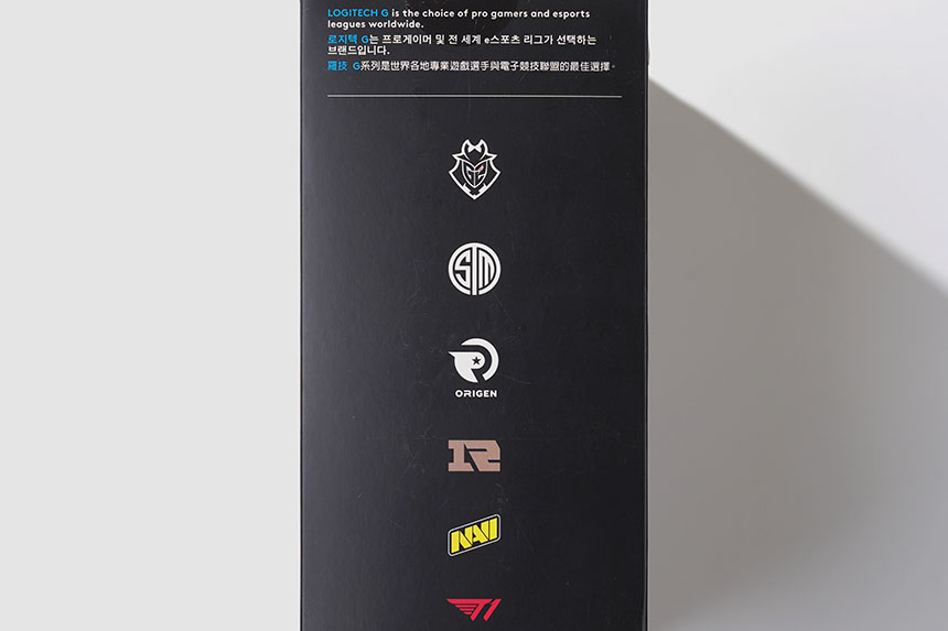 반대쪽 옆면에는 프로게이머들이 선택한 브랜드라는 내용이 설명되어 있습니다. 특히 국내에서 인기가 많은 e스포츠 회사인 T1(에스케이텔레콤씨에스티원)의 로고가 인쇄되어 있다는 점이 반가웠습니다.