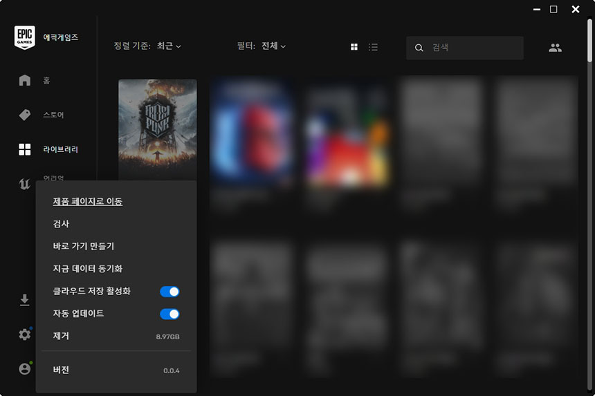 프로스트 펑크를 다운로드하고 용량을 확인해보면 8.97GB로 크게 부담스러운 편은 아니라는 것을 확인할 수 있습니다. 그래서 C 드라이브에 설치해도 괜찮을 것 같습니다.
