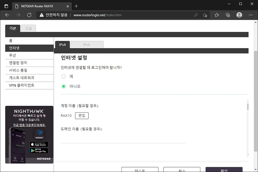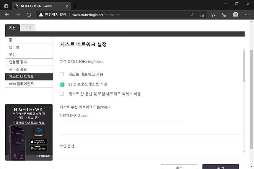 넷기어 나이트호크 앱을 이용하면 넷기어 RAX10 공유기의 일부 설정을 웹 브라우저를 이용해서 관리자 페이지에 접속하지 않고도 변경할 수 있습니다. 편리한 기능 중의 하나라고 생각되었습니다.
