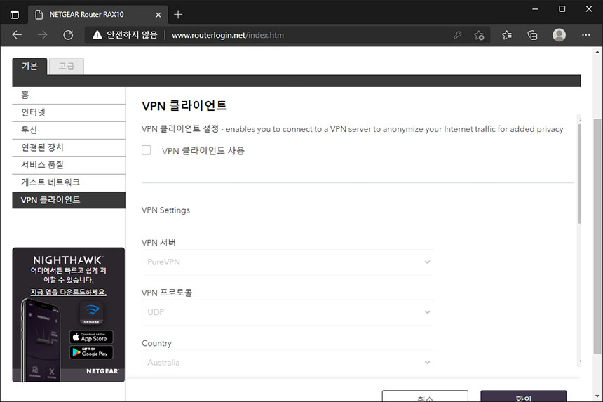넷기어 RAX10 공유기는 보급형으로 설계된 제품이지만 VPN과 같은 전문적인 사용자를 위한 기능들도 지원합니다. 필요에 따라서 적절하게 활용해주는 것이 좋을 것 같습니다.