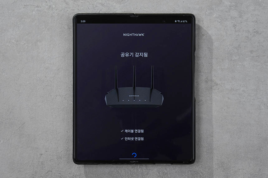 스마트폰에 미리 설치해 놓은 나이트호크 앱을 실행시키면 공유기가 아직 설정되지 않았다는 메시지가 표시되고 초기 설치를 위한 내용이 안내됩니다. 처음 공유기를 사용해 보는 분들도 어렵지 않을 것 같습니다.