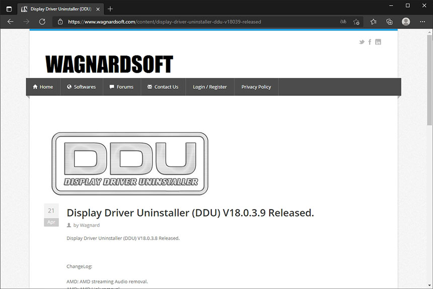 DDU(Display Driver Uninstaller)는 아래쪽에 있는 링크에서 다운로드 받을 수 있습니데. 참고로 포스팅이 작성된 날짜 기준으로 최신 버전은 4월 21일 날짜로 업데이트된 V18.0.3.9입니다.