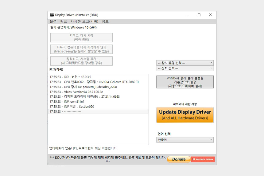 지금까지 DDU를 이용해서 그래픽카드 드라이버를 완전히 삭제하는 방법을 자세하게 살펴보았습니다. 그래픽카드를 새롭게 설치했는데 벤치마크 점수가 낮게 나오거나 게임의 프레임이 평소와는 다르게 떨어진다고 생각되는 분들은 한 번 DDU를 사용해 보시길 바랍니다.
