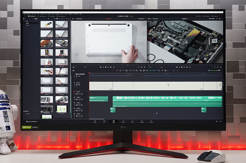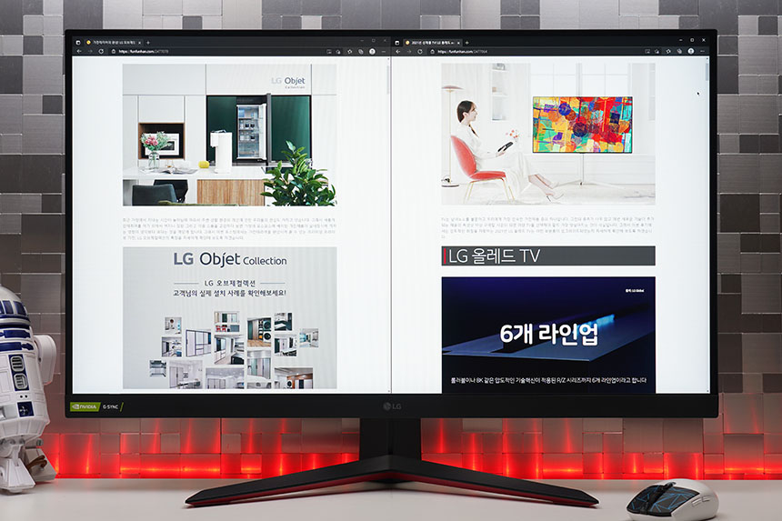LG 울트라기어 32GP850에는 DCI-P3 98%, sRGB 135%를 만족하는 나노 IPS 디스플레이가 탑재되었습니다. 그래서 사진이나 동영상을 편집하는 용도로도 만족스러운 수준의 성능을 제공합니다.