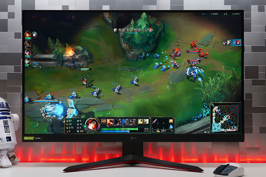 LG 울트라기어 32GP850은 NVIDIA로부터 G-SYNC 호환 공식인증을 받았고 AMD FreeSync Premium 기능도 지원합니다. 그래서 게임을 플레이할 때 화면이 찢어지거나 버벅거리는 현상을 어느 정도 방지할 수 있습니다.