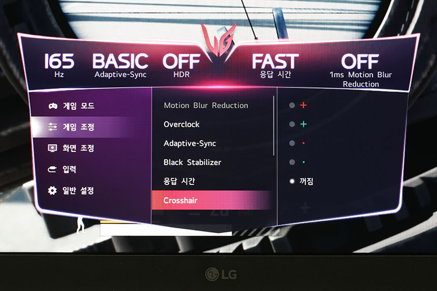 LG 울트라기어 32GP850은 기본 165Hz의 고주사율을 지원합니다. 그리고 오버클럭을 통해서 최대 180Hz까지 주사율을 변경할 수 있습니다. 화면 전환이 빠른 게임을 플레이할 때 설정해주는 것이 좋을 것 같습니다.