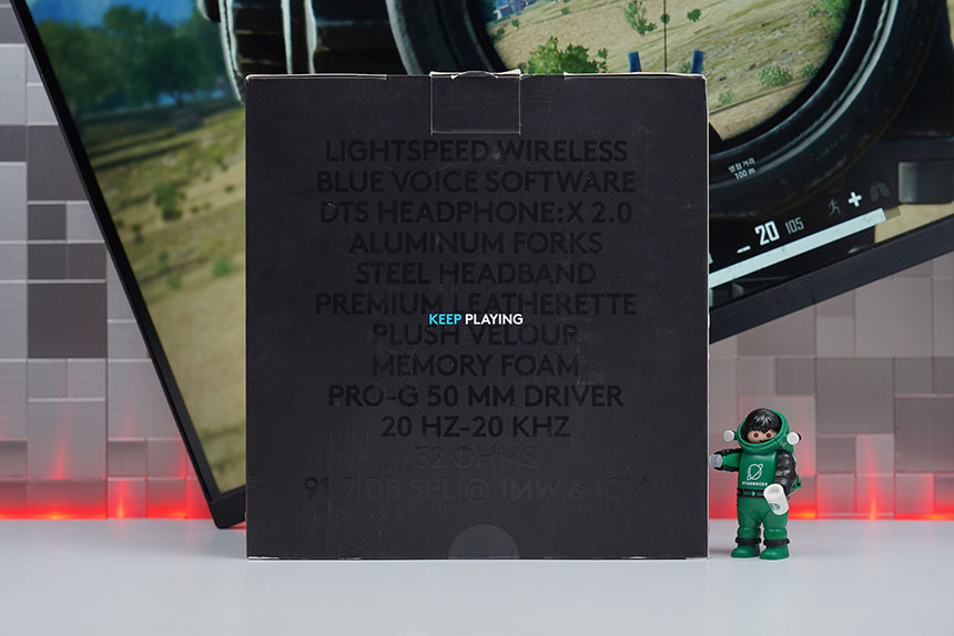 박스의 뒷면에는 로지텍 G PRO X 무선 헤드셋의 주요 특징들이 나열되어 있습니다. 주목해 보아야 할 부분은 BLUE VO!CE 마이크와 DTS HEADPHONE:X 2.0 7.1 채널 서라운드 사운드 기능을 지원한다는 점입니다. 참고로 블루 보이스는 조금 생소한 기능일 수 있는데요. 잠시 후의 로지텍 G HUB 사용법에서 특징을 확인해 보도록 하겠습니다.
