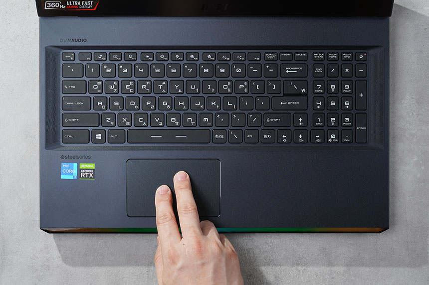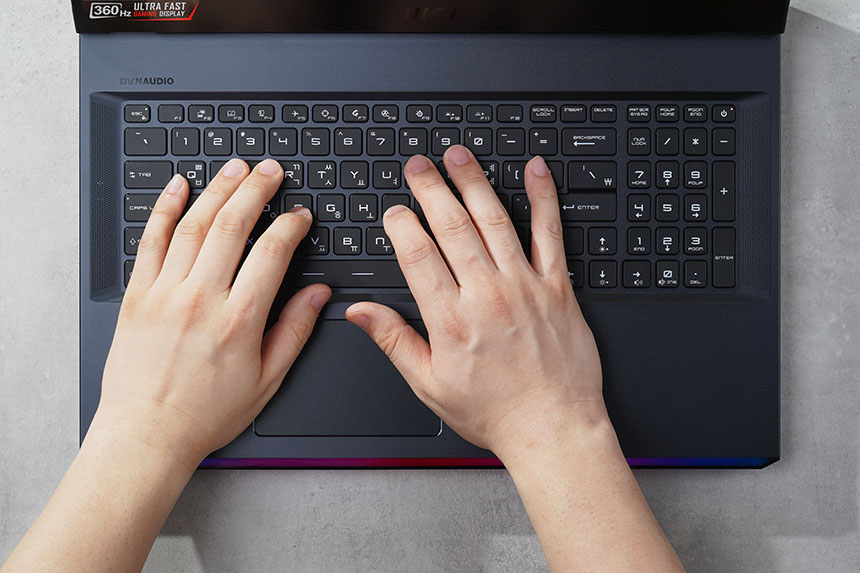 MSI GE76 레이더 11UG의 키감은 상당히 부드러운 느낌을 주는 편입니다. 그래서 장시간 게임을 플레이하거나 문서 작업을 해도 크게 불편할 것 같지는 않습니다.