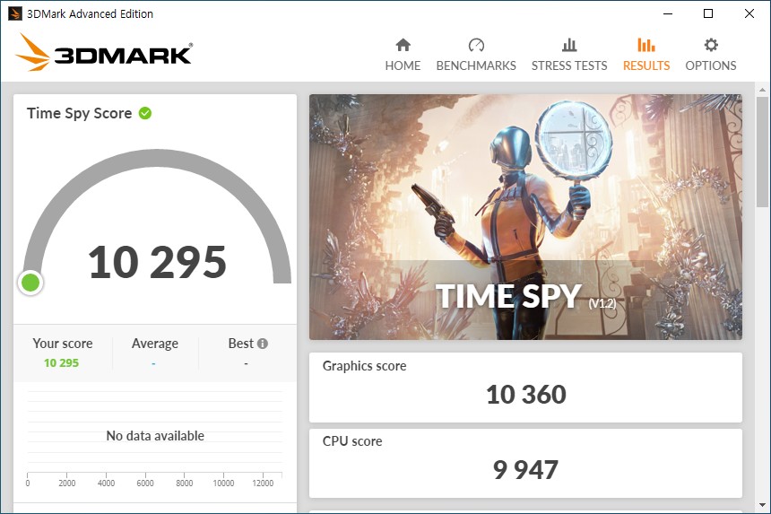 3D 마크를 통해서 성능을 살펴보면 파이어 스트라이크는 23,214점 타임 스파이는 10,295점으로 측정되었습니다. 상당히 뛰어난 수준의 성능을 제공하는 것을 확인할 수 있습니다.