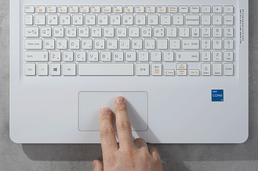 터치패드는 멀티터치를 지원해서 문서나 웹 페이지를 스크롤하거나 프로그램을 전환하는 용도 등으로 활용할 수 있습니다. 그런데 크기가 조금 작다는 점은 아쉬운 부분입니다.