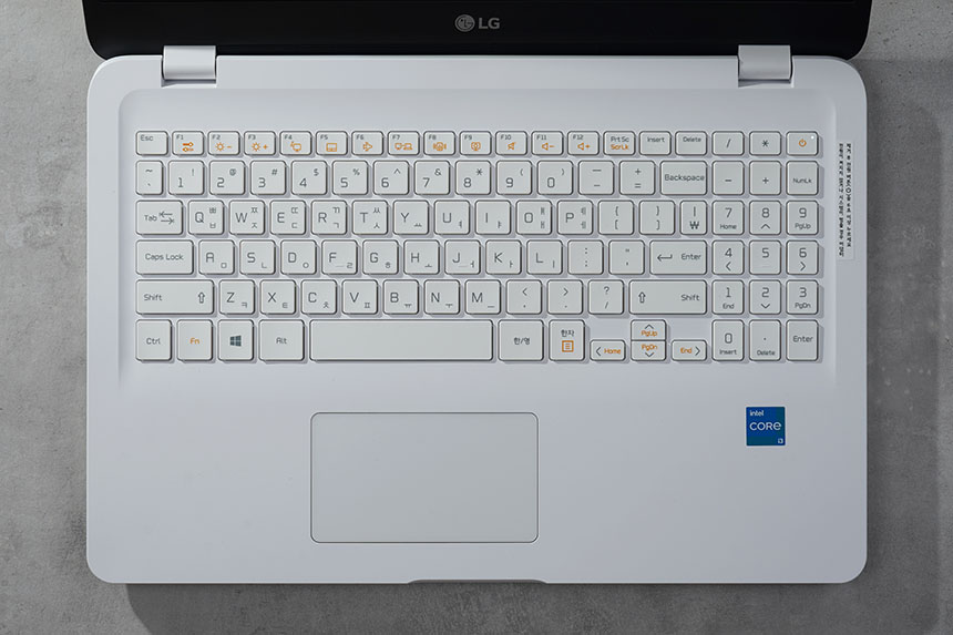 키감은 부드러운 편이라고 생각되었습니다. 그래서 장시간 타이핑을 해도 크게 불편할 것 같지는 않습니다. 특히 15.6인치 화면을 탑재한 노트북이라서 팜레스트 부분도 넉넉해서 편안한 느낌을 주는 편입니다.