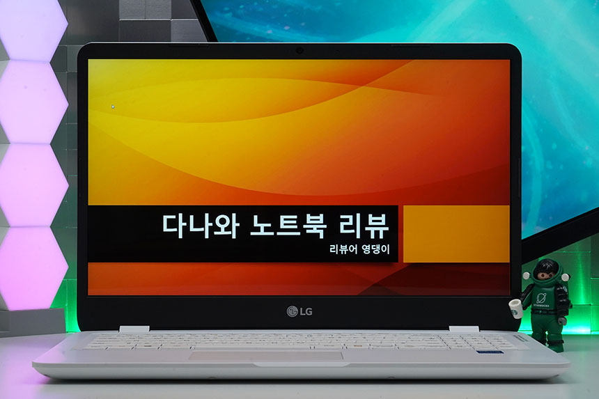 LG전자 2021 울트라PC 15UD50P-GX30K의 상판은 깔끔한 화이트 컬러로 제작되었습니다. 그래서 어느 장소에서 사용해도 부담이 적은 색상이라고 생각되었습니다. 특히 인터넷 강의를 시청하려는 분들이나 라이트한 작업을 하는 직장인들에게 유용할 것 같습니다.