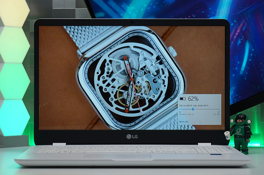 마지막으로 LG전자 2021 울트라PC 15UD50P-GX30K에는 51Wh용량의 배터리가 탑재되었고 화면 밝기 50%에도 동영상을 약 9시간 12분 정도 재생할 수 있었습니다.