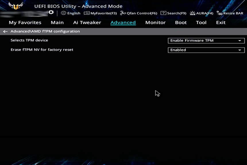 이때는 메인보드의 AMD fTPM을 Enable Firmware TPM으로 설정해 주면 됩니다. 최신 메인보드에서만 지원하고 하드웨어 보안을 위한 기능이라고 할 수 있습니다. 윈도우 11에서는 보안성을 조금 더 강조하려는 것으로 보입니다.