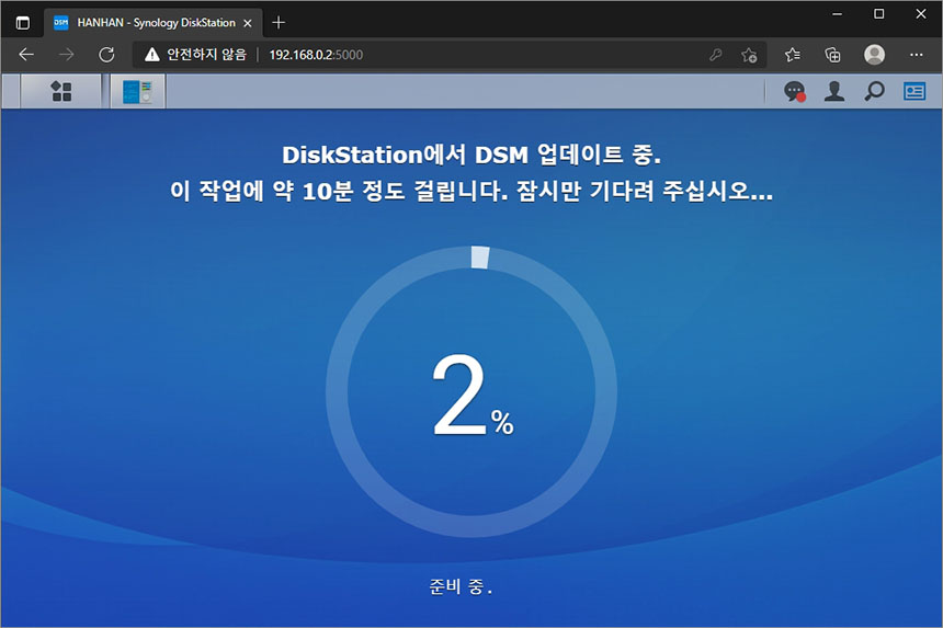 실제로 업데이트해 본 결과 약 10분 정도 소요되었습니다. 그런데 참고로 업데이트 시간은 자신이 사용하는 시놀로지 NAS의 성능에 따라서 조금 차이가 발생할 수 있습니다.
