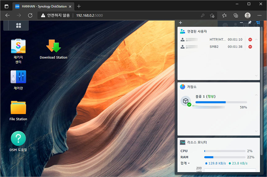 그리고 바탕화면은 이전과 유사하고 아이콘들이 조금씩 변경되었습니다. 그리고 SSD 캐시 기능도 강화되었다고 합니다. 그럼 실제로 어떤 부분들이 개선되었지는 조금 더 사용해 보고 리뷰로 제작해 보도록 하겠습니다.