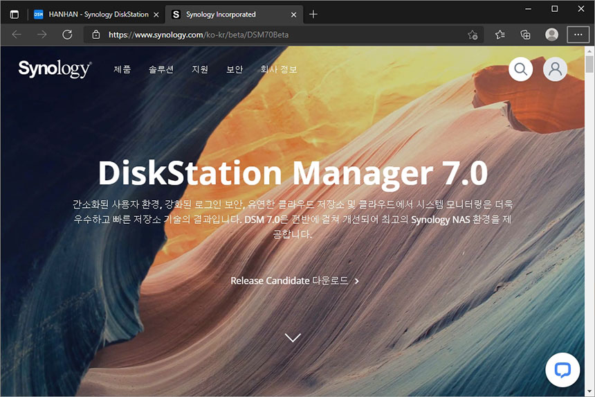 그리고 첫 페이지에서는 DSM 7.0의 기능들이 설명되어 있습니다. 특히 안정성과 성능에 더욱 집중을 했다고 합니다. 그래서 실제로 DSM 7.0의 발표와 개발 기간은 상당히 긴 편이었습니다.