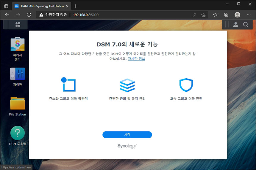 DSM 7.0의 업그레이드가 완료된 후에 로그인 포털을 확인해 보면 스타일이 조금 변경된 것을 확인할 수 있습니다. 그리고 제어판에서 로그인 스타일을 변경할 수도 있습니다.