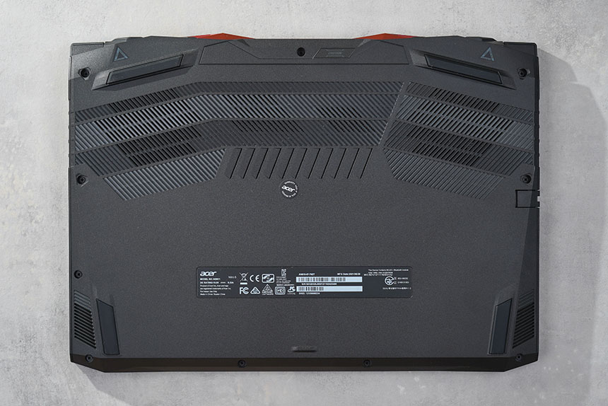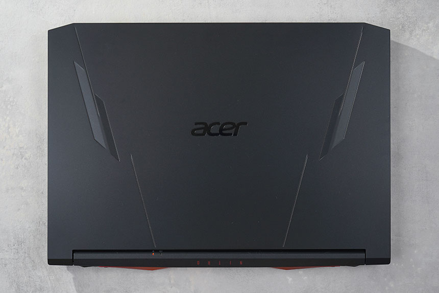 에이서 니트로 5 AN515-57 3060 MAX의 상판은 셰일 블랙 색상으로 마무리되었고 일반적인 노트북들과는 다르게 독특한 형태의 패턴이 각인된 형태로 제작되었습니다.