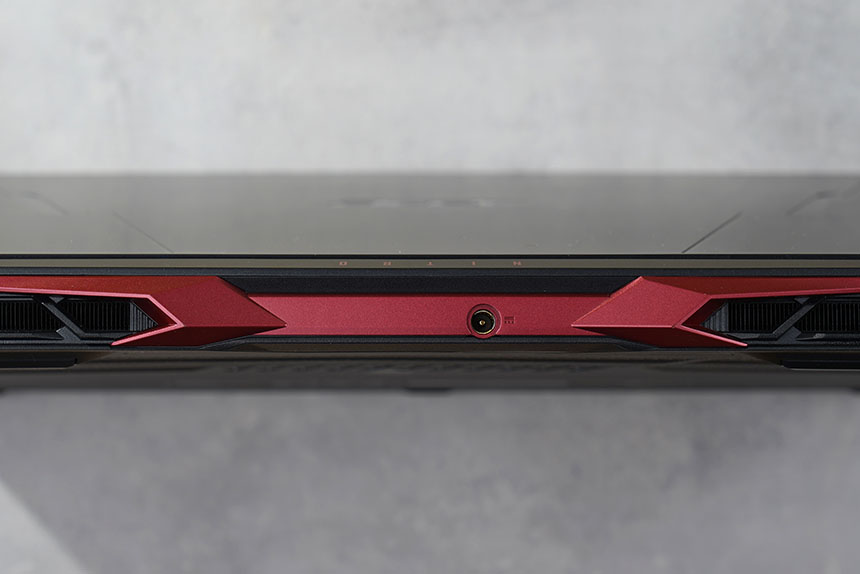 에이서 니트로 5 AN515-57 3060 MAX에는 독특하게도 뒤쪽에 전원 커넥터가 배치되어 있습니다. 그리고 어댑터 플러그는 가로로 딸깍하는 소리가 날 때까지 밀어 넣어주어야 합니다.