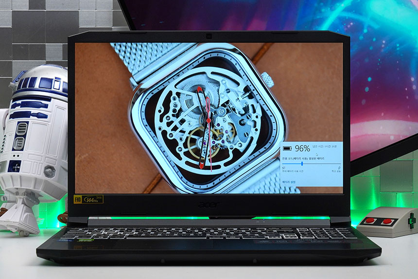 그리고 에이서 니트로 5 AN515-57 3060 MAX에는 57.5Wh 용량의 배터리가 탑재되었고 화면 밝기 50%에서 동영상을 약 5시간 정도 재생할 수 있었습니다. 준수한 편이라고 할 수 있습니다.