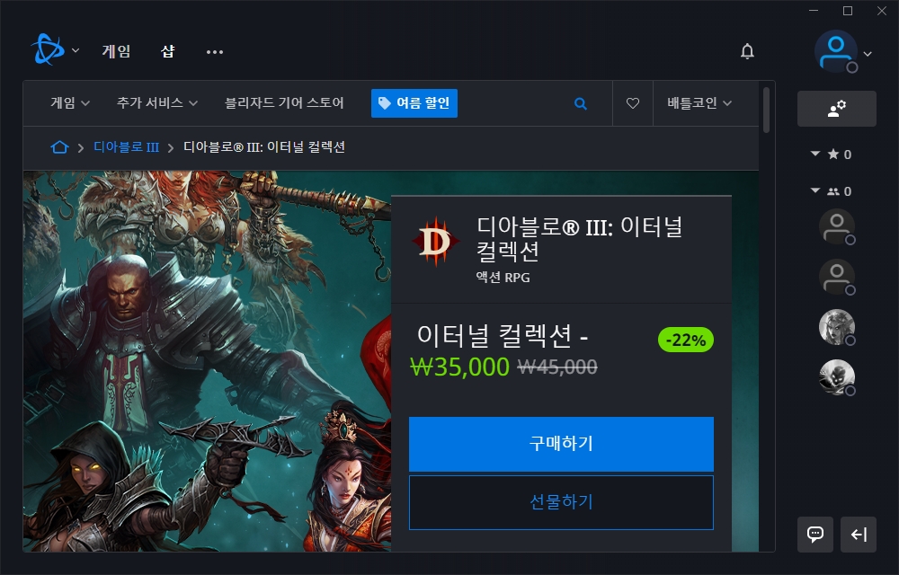 디아블로3 이터널 컬렉션은 35,000원으로 책정되었습니다. 참고로 디이블로2 레저렉션은 48,000원이고 2021년 9월 24일 전후에 정식 출시될 예정이라고 합니다.