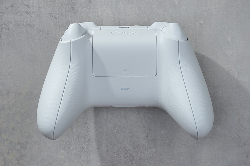 아래쪽을 살펴보면 건전지를 넣을 수 있는 슬롯이 준비되어 있습니다. 그리고 오톨도톨한 텍스처 그립이 적용되어서 조금 더 안정적으로 4세대 엑스박스 컨트롤러를 사용할 수 있습니다.