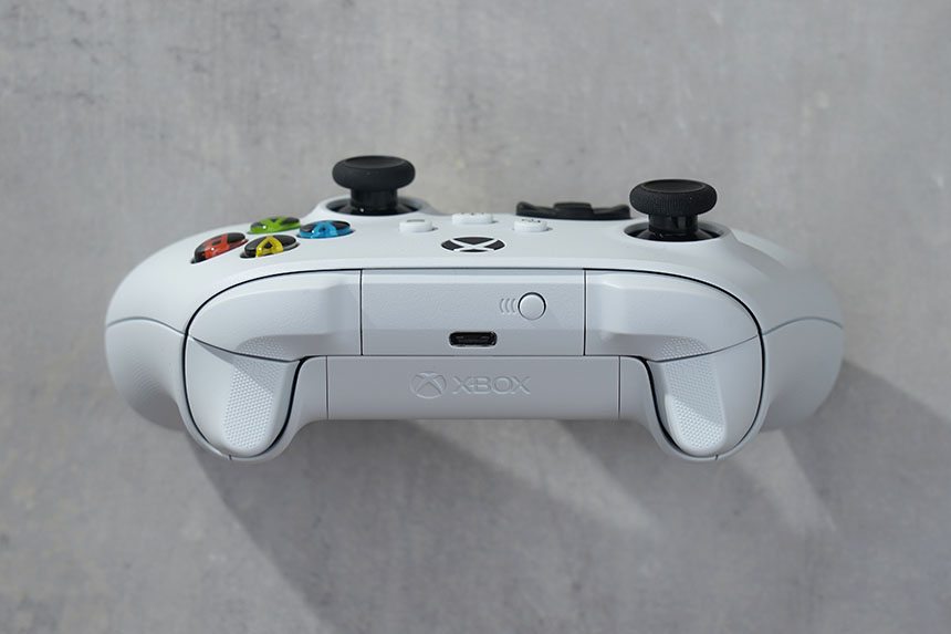 앞쪽을 살펴보면 트리거 버튼이 배치된 것을 확인할 수 있습니다. 그리고 4세대 엑스박스 컨트롤러의 경우에는 블루투스 기능을 지원해서 전용 수신기 없이도 사용할 수 있습니다. 물론 데스크톱에는 블루투스 동글이 별도로 필요합니다.