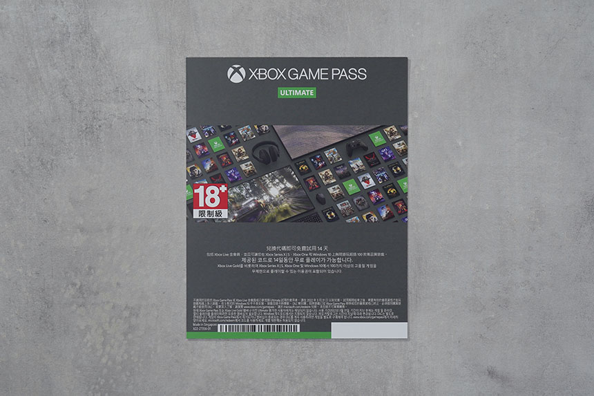 구성품을 살펴보면 엑스박스 게임패스 14일 무료 이용권이 하나 포함되어 있습니다. 한두 작품 정도는 아마도 엔딩을 볼 수 있을 것으로 예상합니다. 최근 게임 분야도 구독형 서비스가 시작되려고 하는데요. 저는 앞으로 대세가 될 것으로 예상합니다.