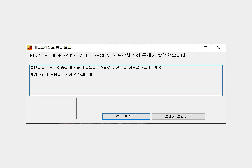 우선 배틀그라운드를 플레이하다 보면 가끔 충돌 보고라는 메시지를 만날 수 있습니다. 게임을 종료할 때 발생하면 크게 문제는 없지만 게임을 플레이할 때 배그가 꺼지면서 오류가 발생한다면 제대로 게임을 플레이하기 어렵습니다.