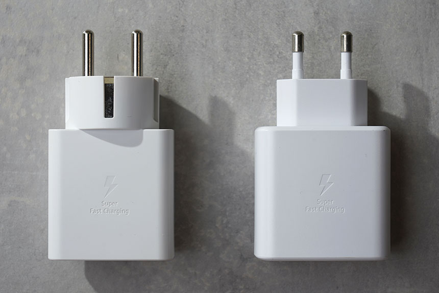 제가 기존에 사용하고 있던 삼성 45W EP-TA845 어댑터와 크기를 비교하면 출력은 더 크지만 크기는 오히려 줄어든 것을 확인할 수 있습니다. 그리고 최근에 Gan 어댑터들이 큰 인기가 있습니다.
