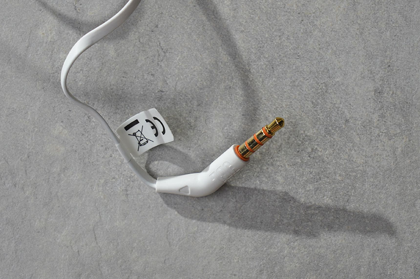 구형 스마트폰이나 노트북에서도 사용할 수 있도록 마이크가 내장된 원버튼 리모컨이 중간에 부착되어 있습니다. 그리고 케이블은 플랫한 형태로 제작되었습니다. 잘 엉키지 않는다고는 하지만 한 번 꼬이면 오히려 원형 케이블과 비교해서 대책이 없을 정도로 꼬입니다.