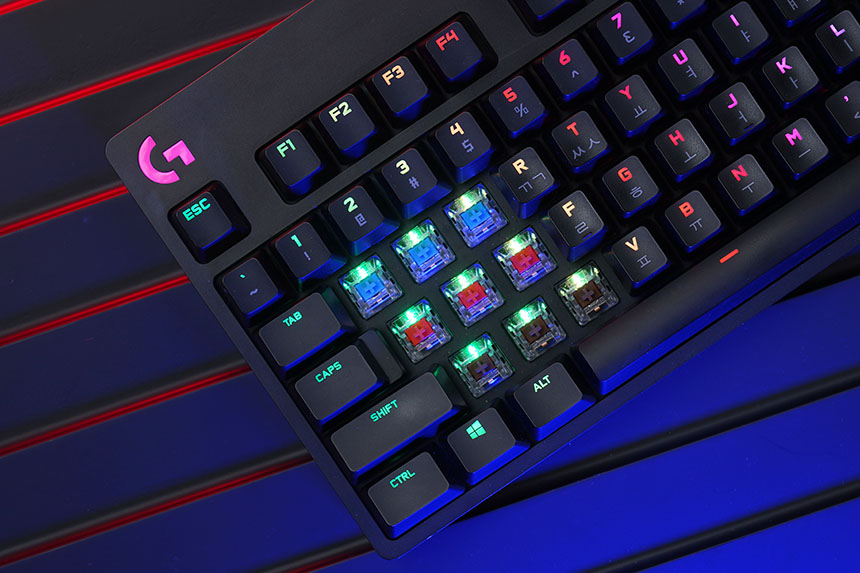 로지텍 G PRO X 게이밍 키보드에는 기본적으로 청축과 같은 느낌의 GX Blue 클릭키가 탑재되었습니다. 촉각이나 청각적 피드백이 강한 축이라서 타이핑하는 재미가 있고 가장 게이밍 기어에 걸맞은 스위치라고 할 수 있습니다.