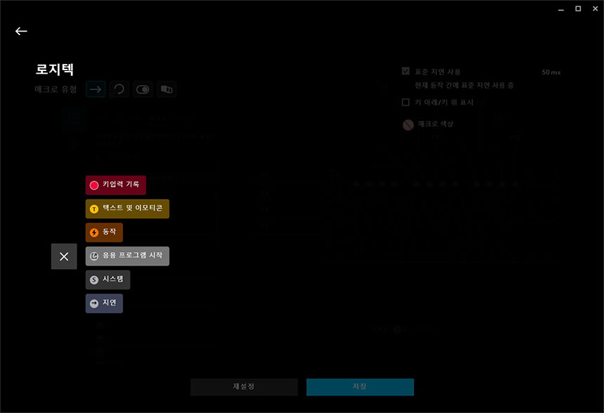 그리고 로지텍 G HUB에서는 강력한 매크로 기능을 지원합니다. 단순한 키입력 기록은 물론이고 텍스트나 동작 그리고 응용 프로그램 시작 등 활용할 수 있는 범위가 상당히 넓은 편입니다.