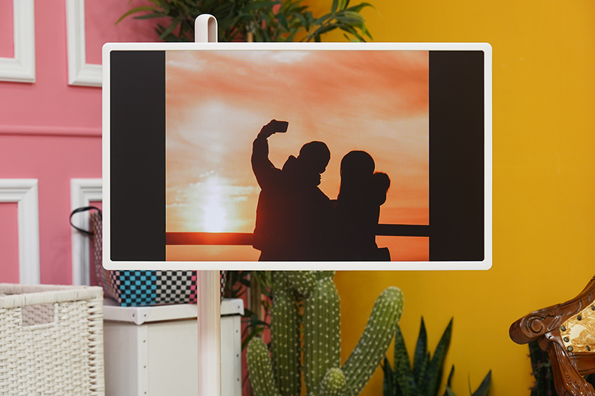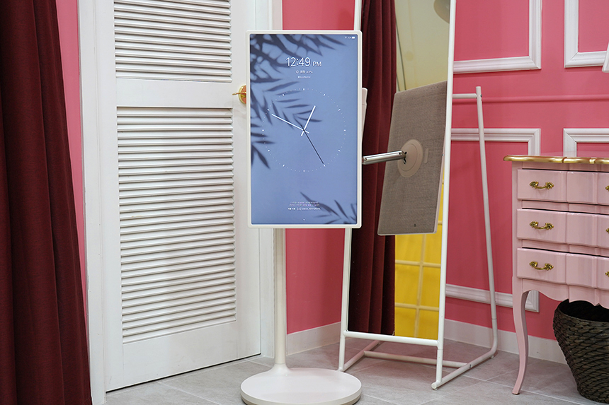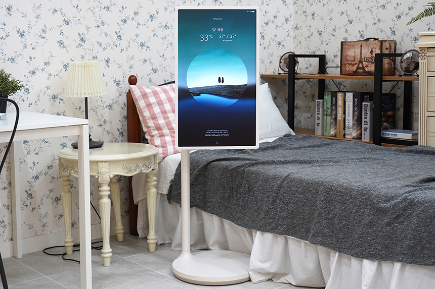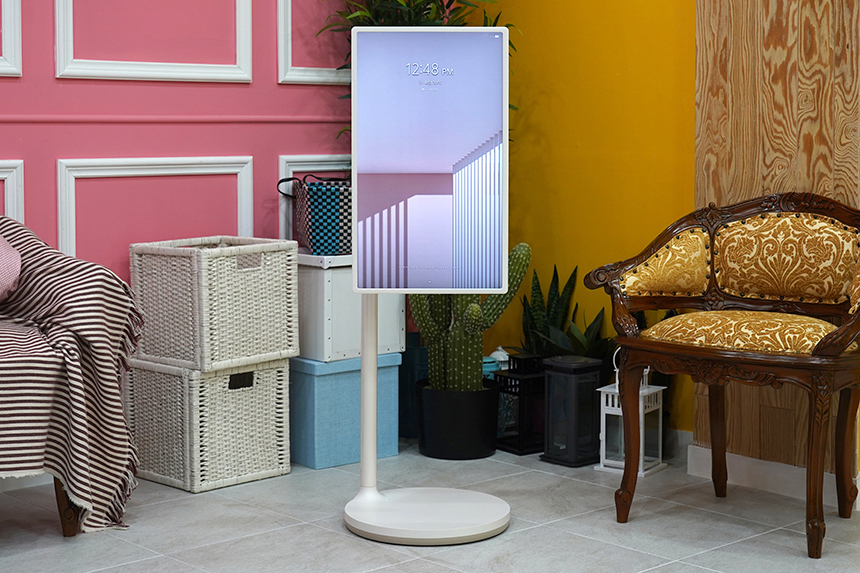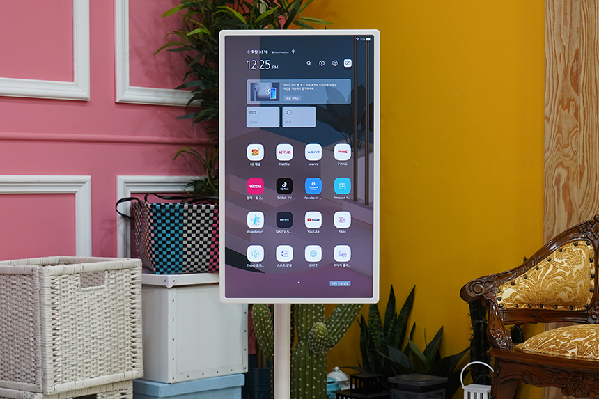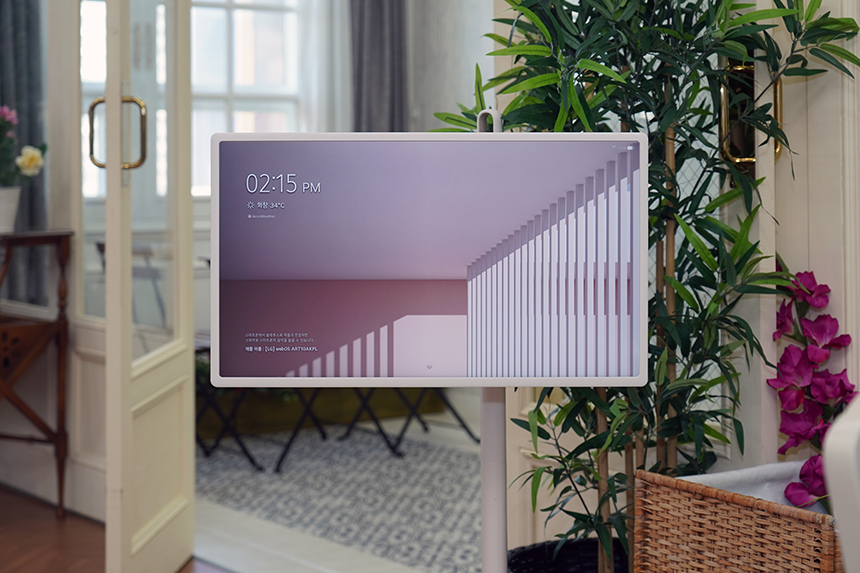 스탠드를 이용하면 LG 스탠바이미(27ART10)의 디스플레이를 세로로 돌려서 사용할 수 있습니다. 특히 잠시 후에 살펴볼 마이뷰 기능을 이용하면 주변의 공간에 어울리는 인테리어소품으로도 활용할 수 있습니다.