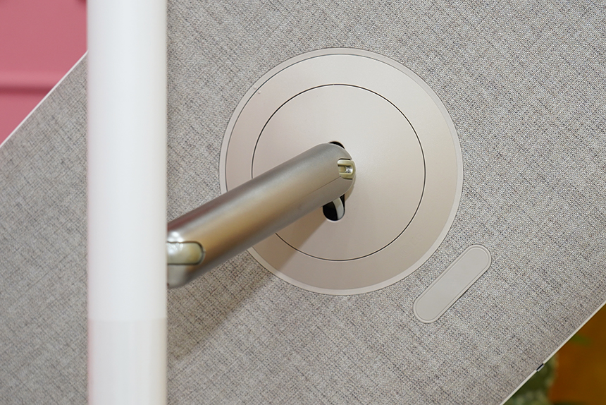 LG 스탠바이미(27ART10)의 뒷면은 고급스러운 패브릭 소재로 마감이 되었습니다. 그래서 가정의 어느 공간에 배치해도 주변 인테리어와 매칭이 좋은 편이라는 장점이 있습니다. 특히 디자인적인 부분에서 완성도가 높은 편이라고 생각되었습니다.