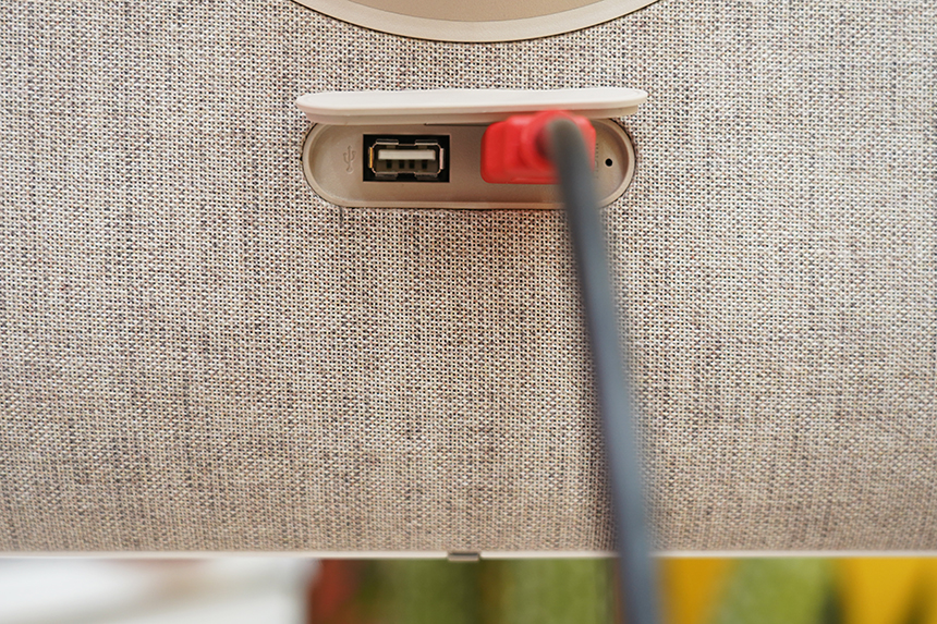 반대쪽 옆면에는 볼륨과 전원 버튼이 배치되어 있습니다. 리모컨과 터치스크린으로 모든 조작을 할 수 있지만, 가끔 리모컨이 어디 있는지 찾기 어려운 순간에 전원을 종료해야 할 때 활용해 주면 좋을 것 같습니다.