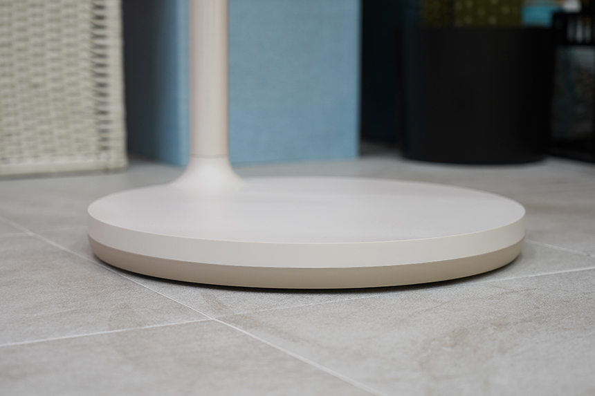 LG 스탠바이미(27ART10)의 또 다른 특징은 하단에 5개의 무빙휠이 장착되어 있다는 점입니다. 그래서 가정의 다양한 장소에 간단하게 밀어서 배치할 수 있습니다. 그리고 무게도 약 17.5kg(스탠드포함)이라서 안정적으로 세워놓을 수 있습니다.