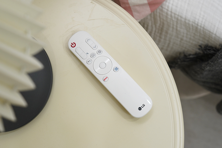 LG 스탠바이미(27ART10)의 기능들은 리모컨을 이용해서 조작할 수 있습니다. 특히 넷플릭스와 아마존 프라임 비디오와 같은 스트리밍 서비스들은 바로 실행시킬 수 있도록 단축키가 준비되어 있다는 점이 편리한 부분입니다.