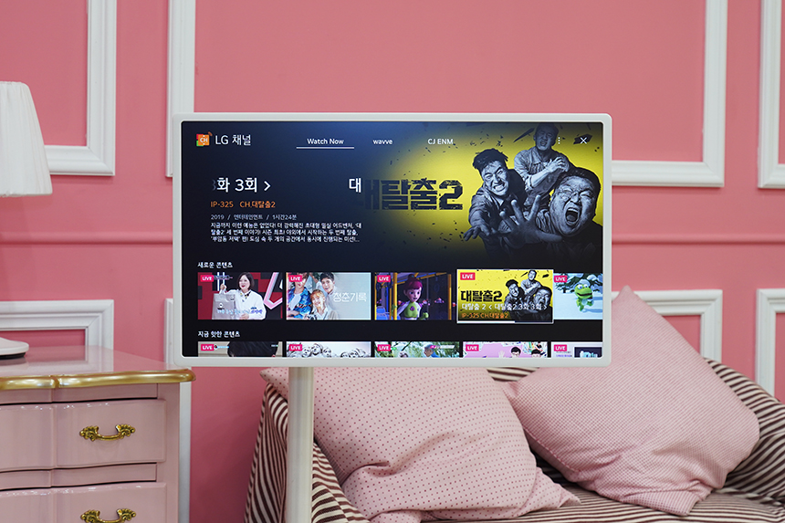 LG 스탠바이미(27ART10)에는 TV 튜너가 탑재되어 있지는 않지만 한국 기준 총 144개의 무료 채널을 제공하는 LG 채널이라는 앱이 기본으로 제공됩니다. 그래서 TV처럼 사용할 수 있고 원룸에서 활용해도 좋을 만한 특징이라고 생각되었습니다.