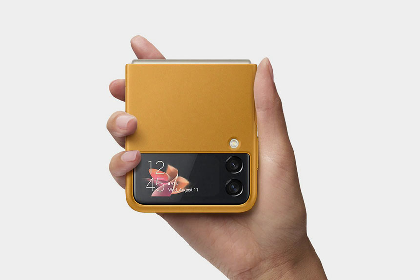 갤럭시 Z 플립3 5G 레더 커버는 가죽으로 제작되어서 고급스러운 느낌을 주는 편입니다. 조금 더 진중한 느낌으로 갤럭시 Z 플립3를 사용하기를 원하는 분들에게 적합한 케이스라고 할 수 있습니다.
