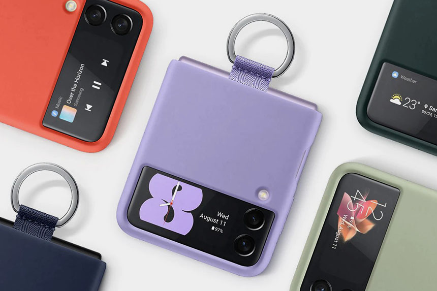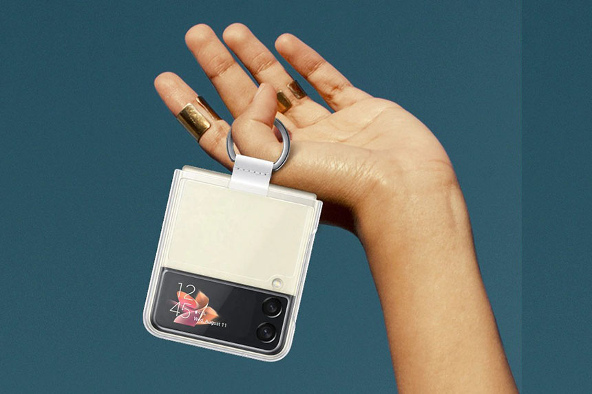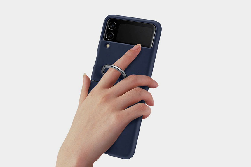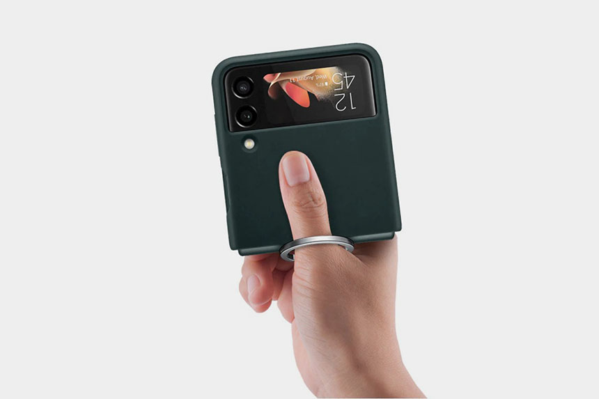 가장 먼저 살펴볼 케이스는 갤럭시 Z 플립3 5G 실리콘 커버 with 링입니다. 이름에서도 알 수 있듯이 뒷면에 링이 부착되어 있어서 사용할 때 손가락을 끼워서 바닥에 스마트폰이 떨어지는 것을 방지해주는 역할을 합니다.
